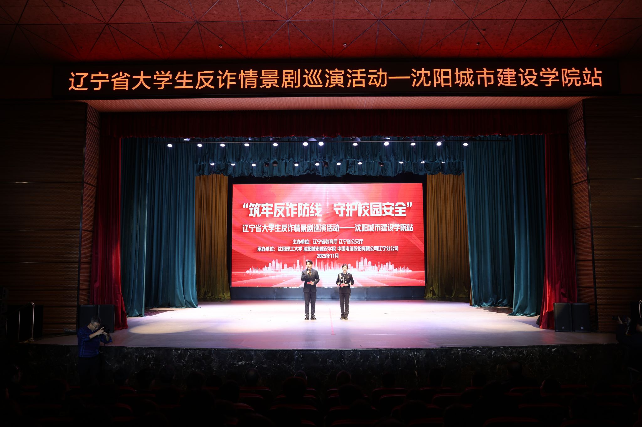 012025-12辽宁省大学生反诈情景剧巡演活动走进沈阳城市建设学院11月30日,由辽宁省教育厅、辽宁省公安厅主办,我校和沈阳理工大学联合承办的“筑牢反诈防线 守护校园安全”辽宁省大学生反诈...2025-12-01 -