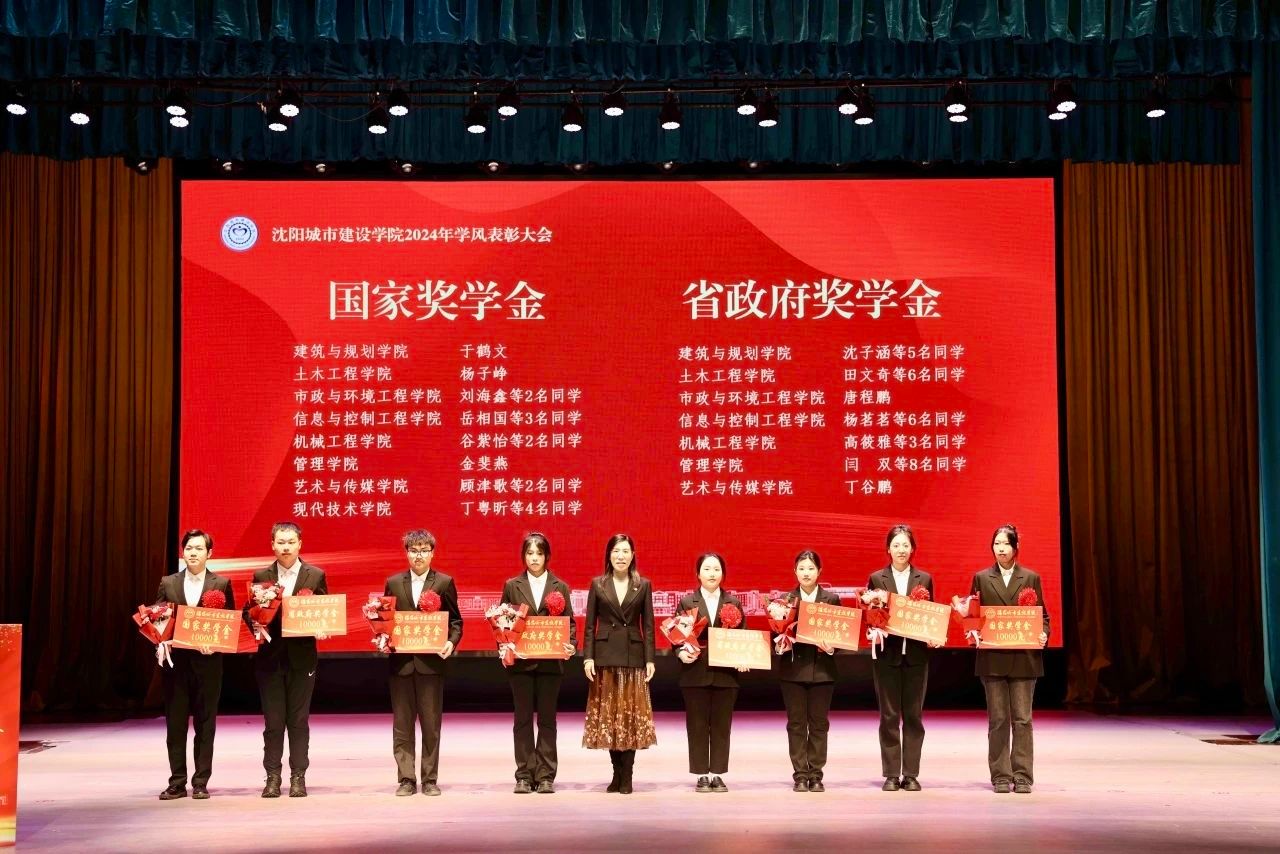 傅柏权宣读了《关于表彰沈阳城市建设学院2024年优良学风标杆集体及个人的决定》和《关于表彰沈阳城市建设学院学生奖学金的决定》。与会领导依次为获奖的先进个人和先进集体颁发荣誉证书。