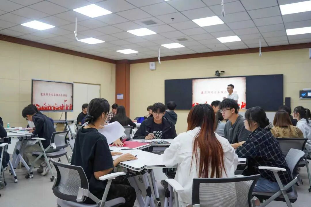 纪委书记张涛参与建筑与规划学院班会。建筑学234班辅导员陆鹏程与班导师李牧、思政课教师丛羽带领学生用画笔描绘抗战建筑故事,让专业知识与伟大抗战精神同频共振,实现了专业与思政教育的深度融合,让“自强”有了具体表达,进一步激励了学生要刻苦学习、强健体魄、矢志报国。