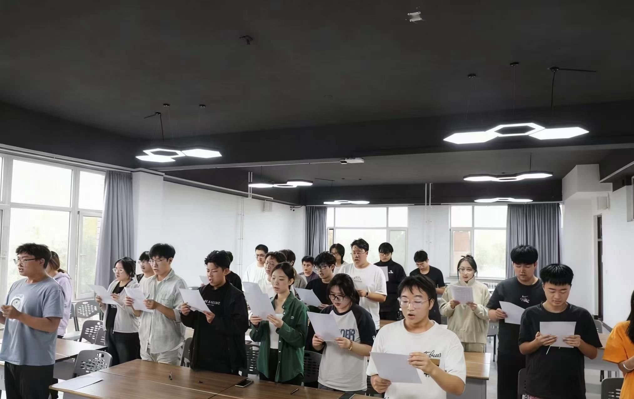 副校长吴继君、傅柏权共同参加艺术与传媒学院主题班会。在悠扬的《松花江上》旋律中,辅导员张雪煜以伟大抗战精神的自强底色为指引,思政课教师李媛在线指导,线上线下共同号召学生提笔写下爱国志向,形成“爱国承诺墙”,成为全体学生铭记历史、践行自强的可视化动力。