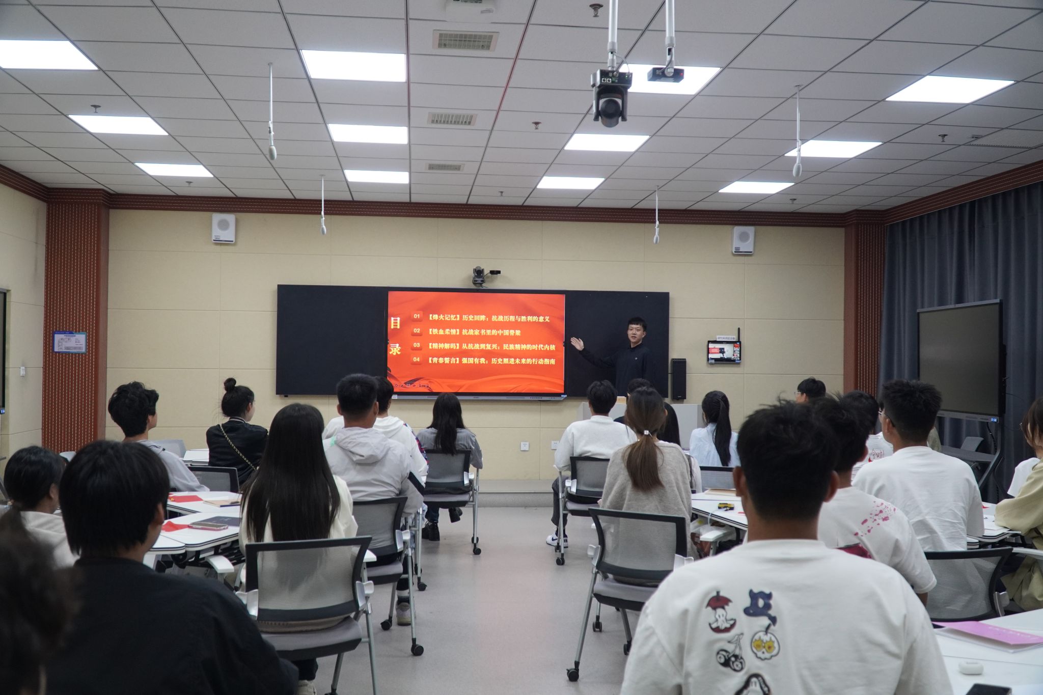 校长助理张蕾参加现代技术学院班会。从烽火记忆到铁血柔情,从精神解码到青春誓言,辅导员杨淮铄、思政课教师李媛在诵读家书、讲史明志的多元化设计中激励学生将历史认知转化为奋进力量。