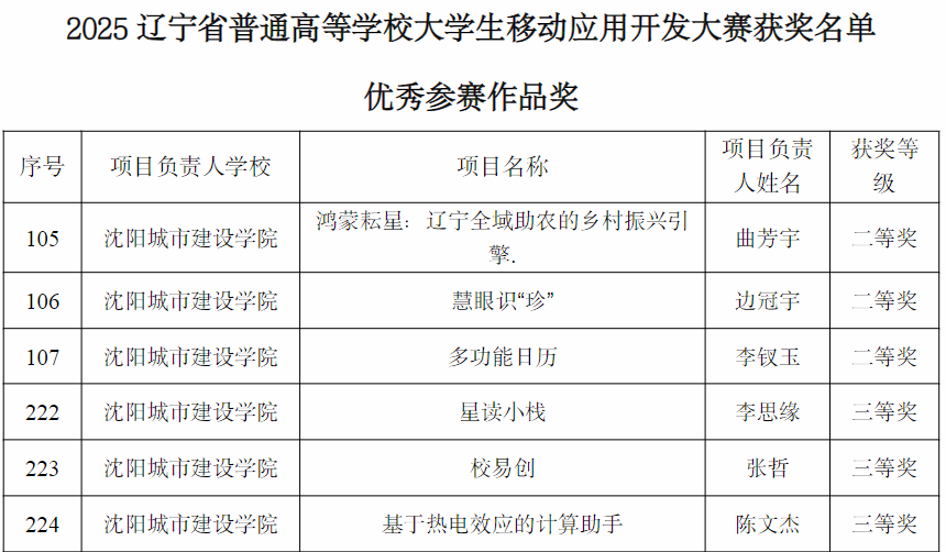 近日,2025年辽宁省普通高等学校大学生移动应用开发大赛在大连交通大学圆满落幕。我校推选的作品荣获二等奖3项、三等奖3项;学校获得优秀组织奖。
