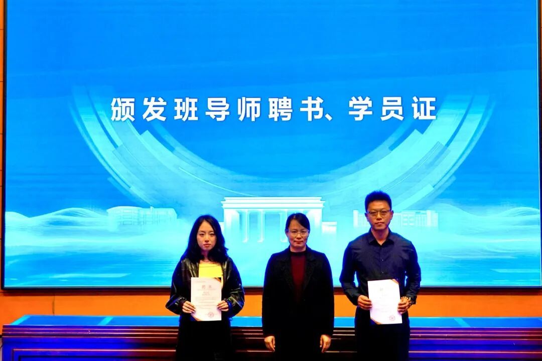 李厚艳为国际硕士班班导师颁发聘书,并向首届国际硕士班学生授予学员证。这也标志着学校国际硕士班培养工作的正式启动。