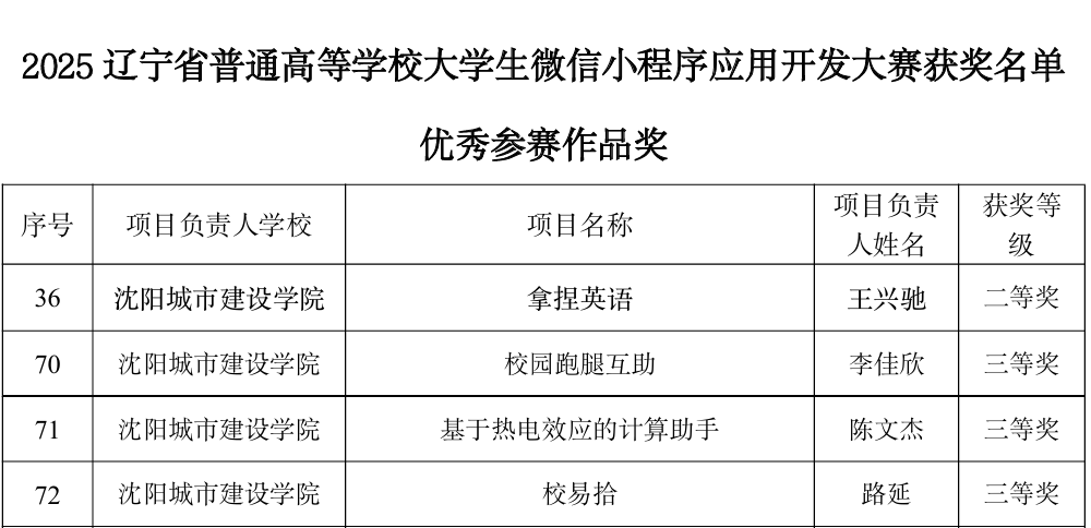 近日,2025年辽宁省普通高等学校大学生微信小程序应用开发大赛在大连交通大学圆满落幕。我校择优推送5项作品晋级省赛,最终斩获二等奖1项、三等奖3项;学校荣获优秀组织奖。