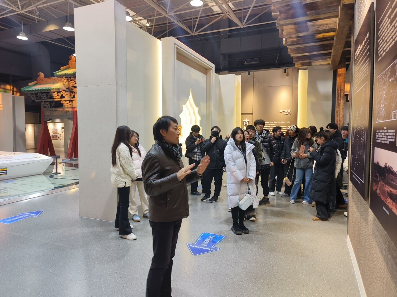 课后,在沈阳城市建设展示馆副馆长罗健的带领下,师生共同开展参观学习。通过文物史料、场景复原、图文展板等丰富形式,带领同学们系统回顾了沈阳2300年建城历史,沉浸式感受城市深厚的历史底蕴与文化脉络。
