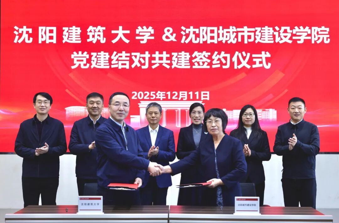 签约环节,李海燕与张佩栋共同签署《沈阳城市建设学院与沈阳建筑大学党建结对共建协议书》,就“组织联建、队伍帮带、育人协同、资源共享、发展双赢”等多个维度达成共识。