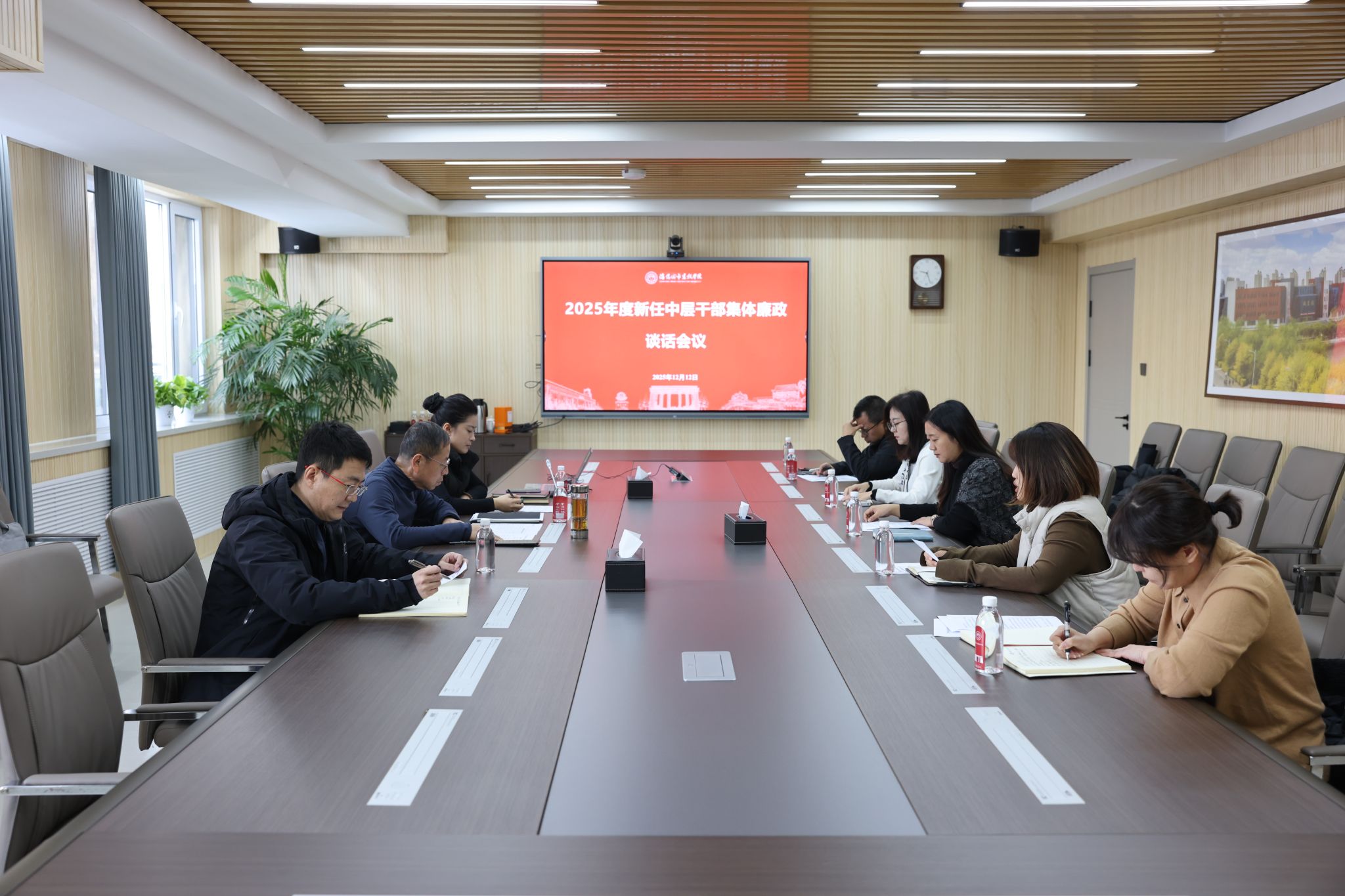 为加强党风廉政建设,勉励新提任干部在新的工作岗位上做到清正廉洁、履职尽责,以饱满的精神状态创造出更加优异的成绩,12月12日上午,学校在守正楼105会议室召开2025年度新任干部集体廉政谈话会。学校纪委书记张涛出席会议并讲话。