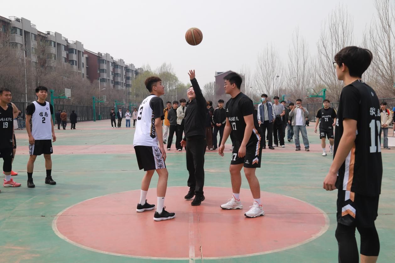 傅柏权在致辞中表示,学校始终坚持“健康第一”的教育理念,以体育活动锤炼学生意志、凝聚团队力量,希望全体学子在赛场上奋勇拼搏、尊重规则、友爱互助,展现城建风采。开幕式尾声,傅柏权为首场篮球比赛开球,赛场即刻被青春活力与竞技热情点燃。