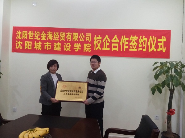 在热烈的掌声中,胡伟与沈阳世纪金海经贸有限公司丁经理签订了协议书。胡伟高度评价了此次校企合作签约仪式举行的重要意义:校企合作后,环境系能够为企业发展提供人才,促进企业发展;同时,公司能够为环境系学生提供就业、实习的平台,促进环境系的发展。