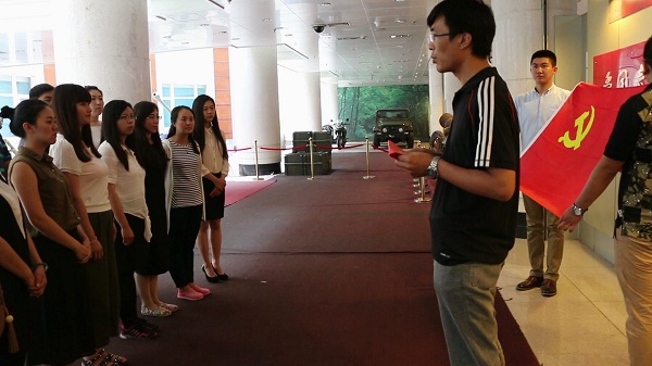 为使我校党员充分认识“两学一做”学习教育的重大意义,扎实开展学习教育,进一步加强党员思想作风建设,6月30日,由机关第二、第四党支部联合信息与控制工程系直属党支部共同开展的“两学一做”学习教育活动暨“庆祝建党95周年,重温入党誓词”活动在沈阳理工大学兵器博物馆举行,机关党总书记出席活动,机关第二党支部、第四党支部、信息与控制工程系直属党支部全体党员参加了本次活动。