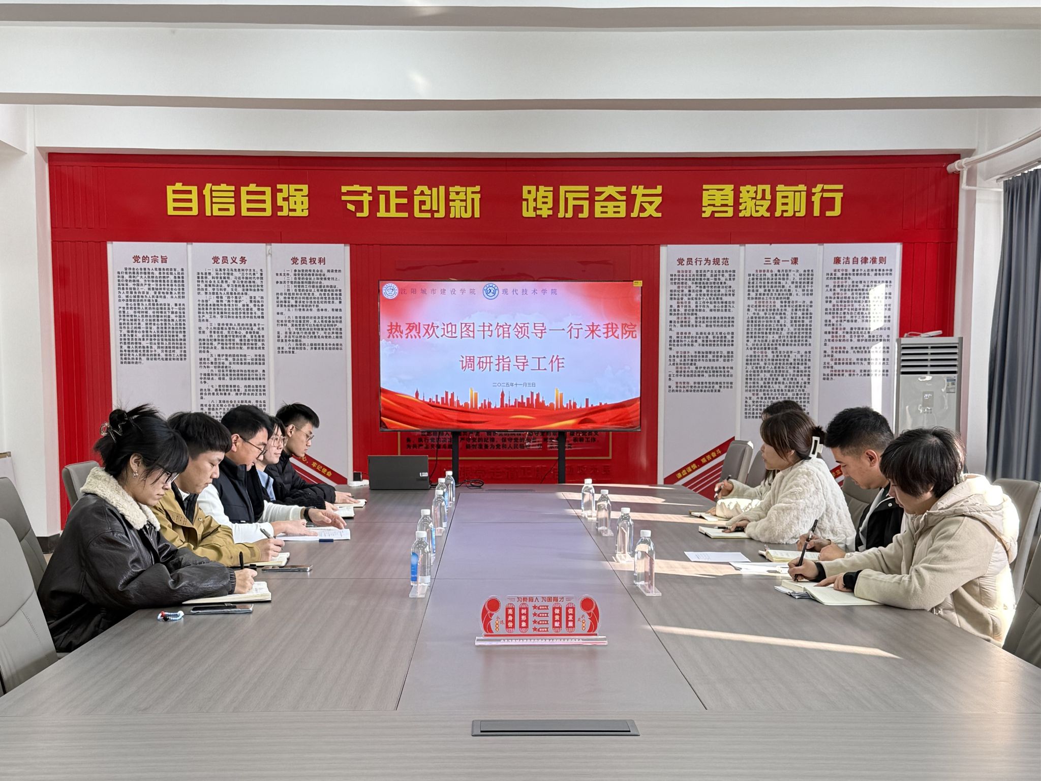 11月3日,学校图书馆馆长李璘一行走进现代技术学院,与学院党总支书记、副院长朱帅及全体辅导员开展调研座谈。双方聚焦“专升本”资源保障、图书馆服务优化等核心议题,共同探讨服务学生成长的务实举措。